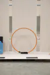An absurdist proposition: a spring-loaded excavation device that promises to cover vast distances with each dig. Part garden tool, part fairy tale prosthetic, it takes the exhibition’s theme of shifting ground quite literally. Whether it actually works is beside the point.